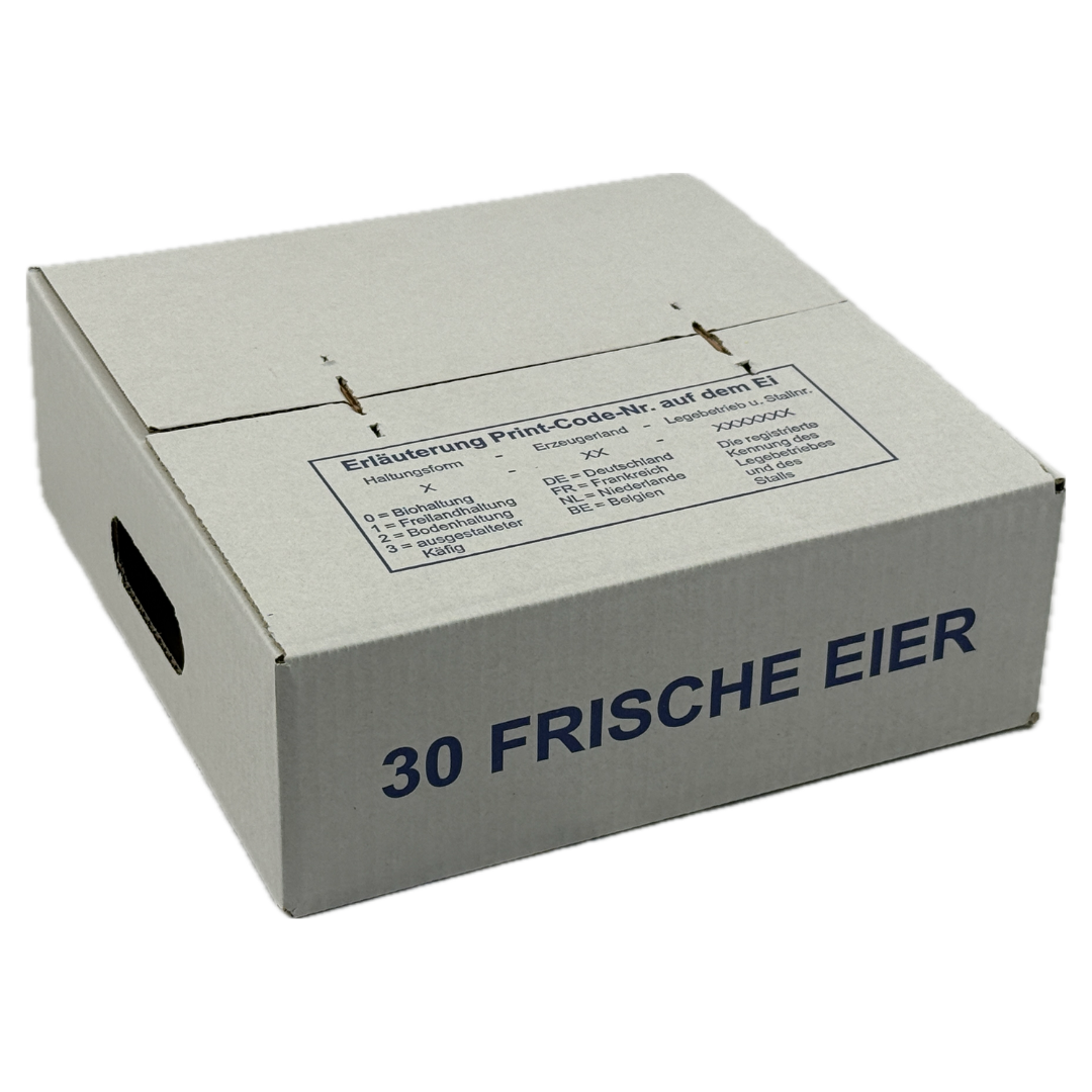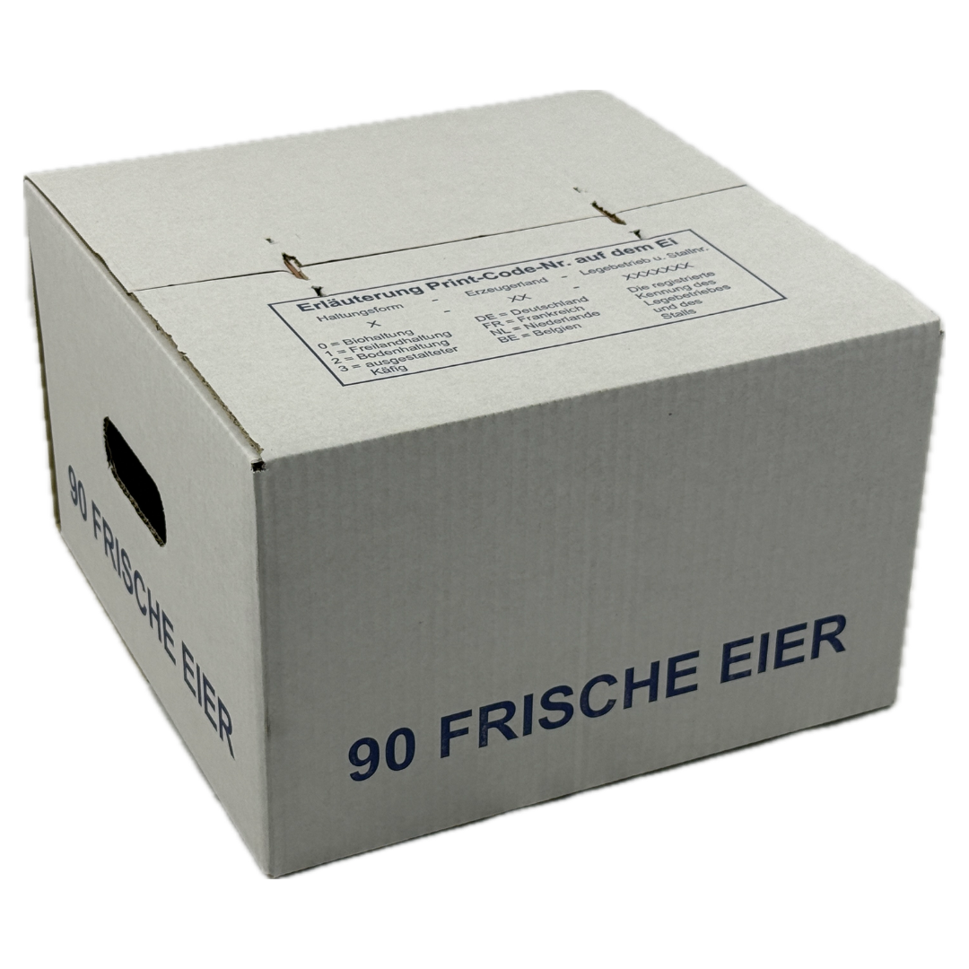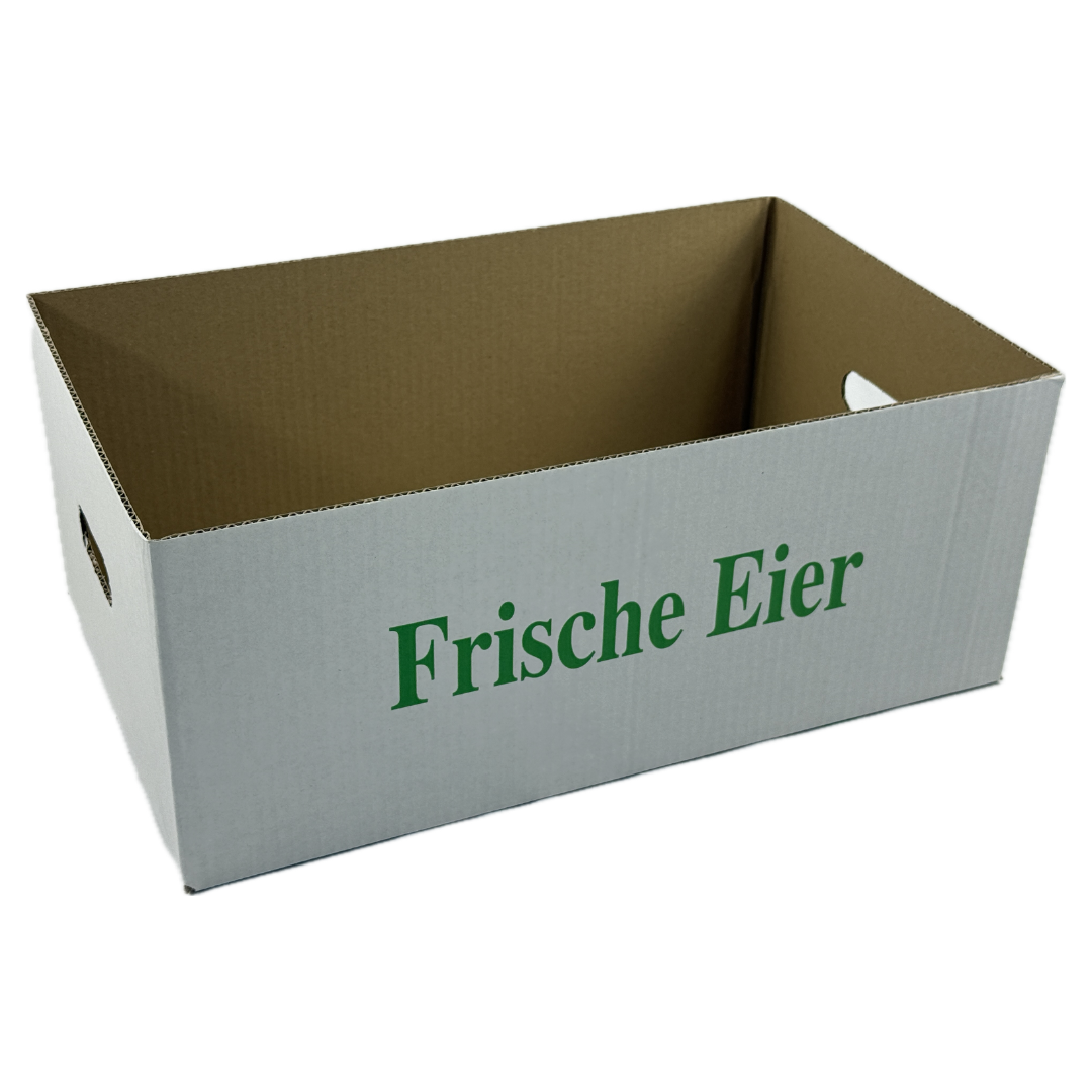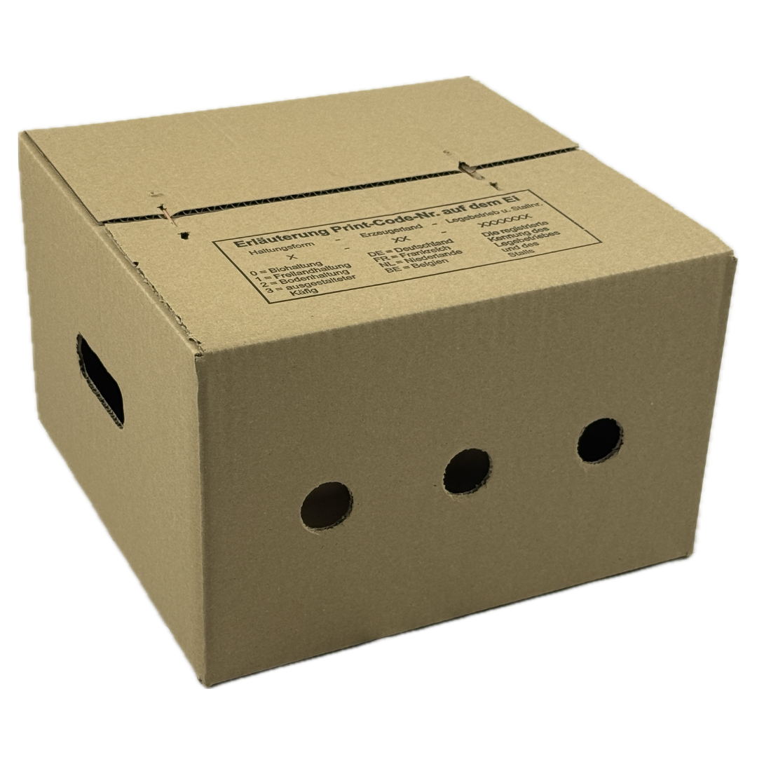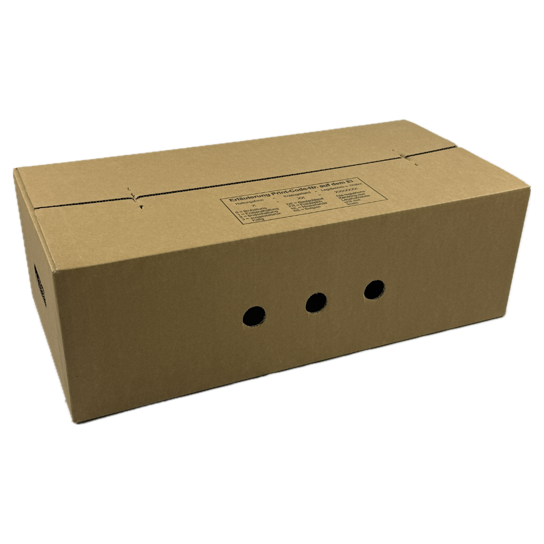 Schützen Sie Ihre Eier optimal während Transport und Lagerung: Unsere Umkartons gibt es in verschiedenen Größen und auf Wunsch mit individuellem Druck.